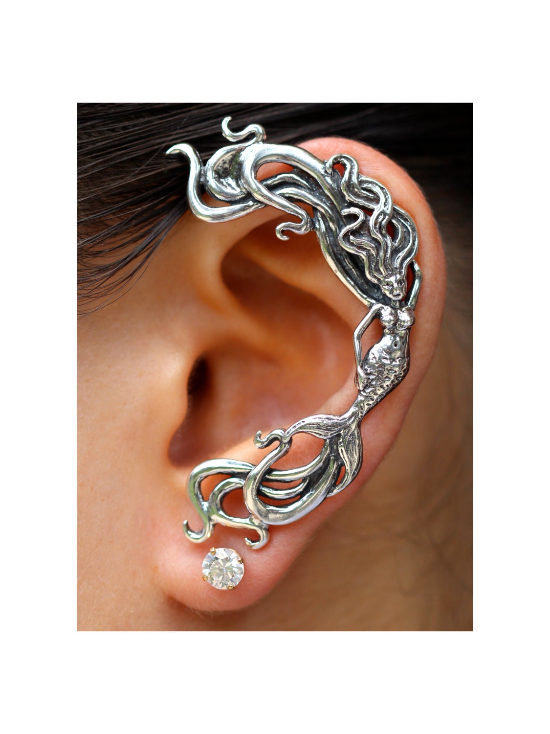 Mermaid Ear Wrap Silver Mermaid Ear Cuff Wave Ear Cuff Wave Etsy Singapore